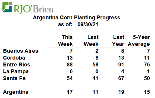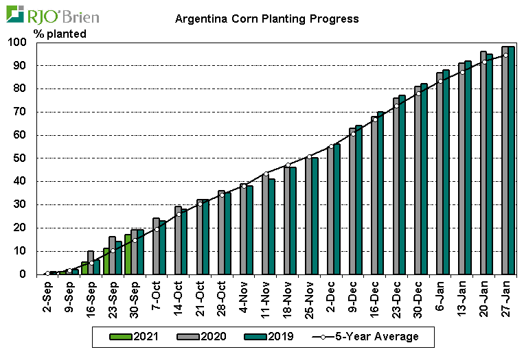 Argentina Crop Progress for #Corn #Futures by Admin | Oct 4, 2021 -Early Argentine corn planting slightly behind last year, ahead of 5 year average