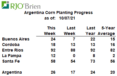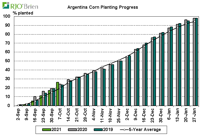 -Early Argentine corn planting ahead of last year as well as the 5 year average
