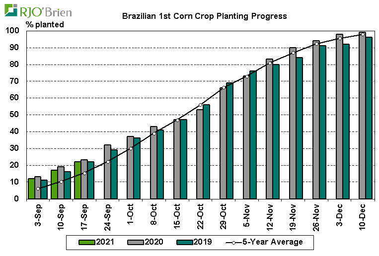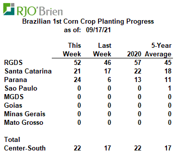 Brazilian #Crop Progress for #Corn #Futures by Admin | Sep 21, 2021 -Corn planting progress right in line with last year, ahead of 5-year average