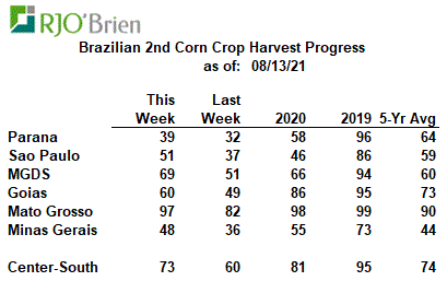 Brazilian #Crop Progress for #Corn #Futures Still Well Behind by Admin | Aug 17, 2021 -Corn harvest progress well behind average/last year