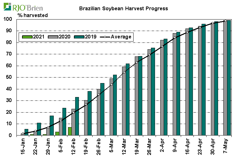 -Brazilian soybean crop harvest significantly behind last year as well as the average