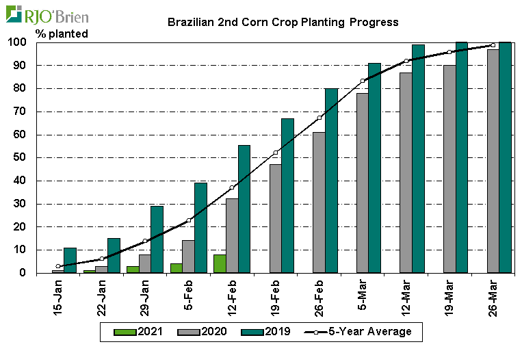 -Brazilian second corn crop planting has had a slow start and is well behind last year and well behind average