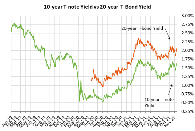 20-year T-bond auction — The Treasury today will sell $23 billion of new 20-year T-bonds. The size of today’s auction is down by $3 billion from August’s comparable 20-year T-bond auction of $27 billion since the Treasury’s borrowing requirement is starting to fall back from the pandemic spike. The 20-year T-bond yield yesterday rose +4 bp to 2.07% and posted a 3-week high.