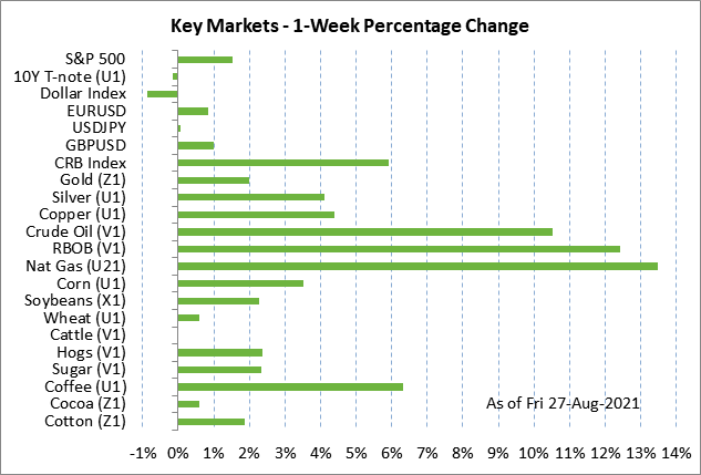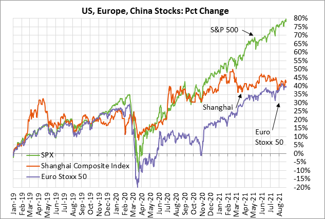 — The U.S. markets this week will focus on (1) whether the U.S. Covid infection levels continue to worsen, (2) Friday’s payroll report (expected +750,000), (3) further analysis of the timing of the Fed’s QE tapering, (4) oil and gasoline prices as Hurricane Ida on Sunday hit the Louisiana coast with winds stronger than Katrina, and (5) anticipation of the return of Congress later in September when they will need to work on the continuing resolution, debt ceiling hike, $550 billion bipartisan infrastructure bill, and Democrat’s $3.5 trillion spending bill.