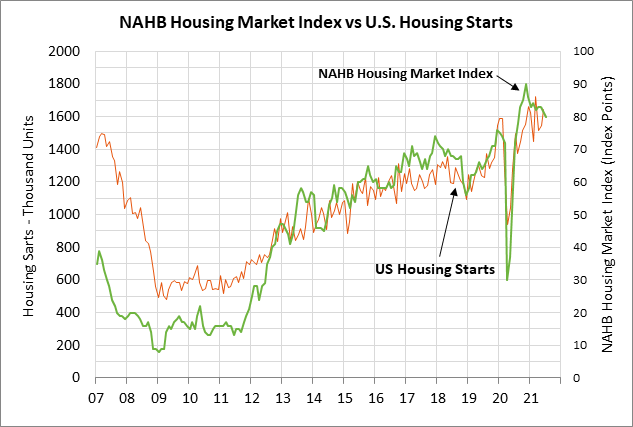 U.S. homebuilder confidence remains solid due to strong demand for new homes, tight supplies, and low mortgage rates. New homes sales have fallen in recent months due to tight supplies and resistance to the sharp rise in new home prices. However, homebuilders remain optimistic about the outlook for the new home market.