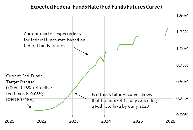 Indeed, the market is expecting the Fed to announce QE tapering at either its next meeting on November 2-3 or at its following meeting on Dec 14-15. The market is then discounting a 50% chance of the Fed’s first rate hike by late 2022 and a full chance of that rate hike by early 2023.