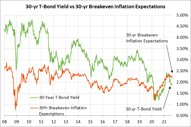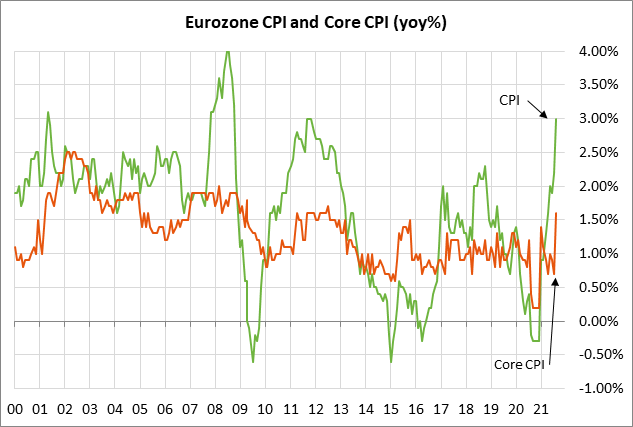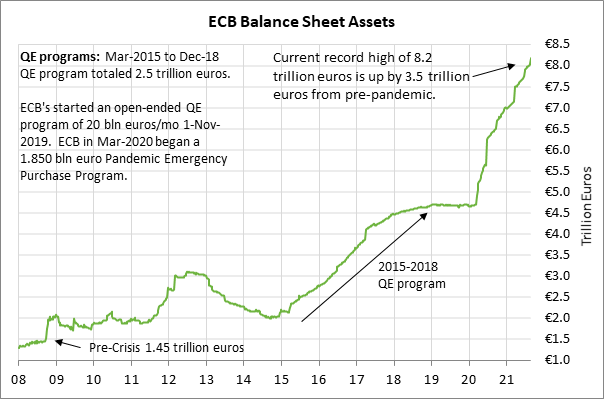 The markets had previously thought that the ECB would extend its PEPP program beyond March 2022. However, some ECB officials have recently called for reining in the ECB’s QE programs because the Eurozone economy is on more solid ground and Eurozone inflation is soaring.