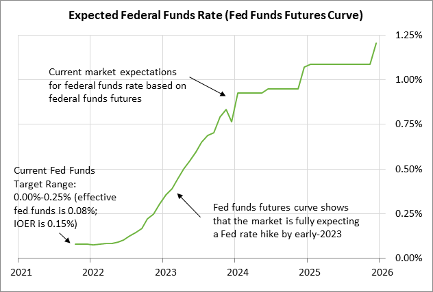 The markets are discounting about a 50-50 chance of a rate hike by the end of 2022 and a full chance of a rate hike by early-2023. That is in line with the updated dot-plot, in which half the 18 FOMC members expect at least one rate hike by the end of 2022, and the other half expect an unchanged rate. The dot-plot indicated a median forecast that the Fed will raise its funds rate three times for an overall rate hike to 1.0% by the end of 2023.