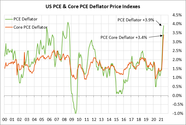 - June U.S. deflator expected to show the same large increases seen for the June CPI and PPI reports