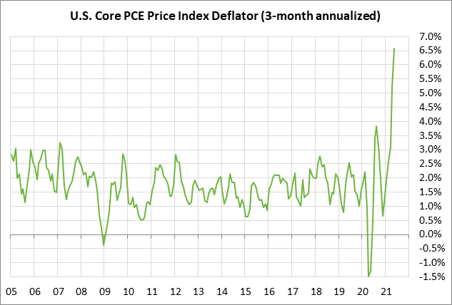 Inflation in recent months has risen sharply, with the 3-month annualized deflator in May up +6.8% and the core deflator up +6.6%. The CPI data for June, which has already been released, was even stronger, with a headline increase of +9.7% on a 3-month annualized basis and a core increase of +10.6%.