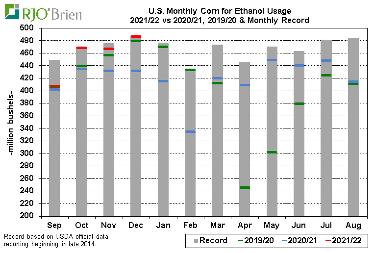 -Corn for ethanol usage continues to support USDA annual demand estimate