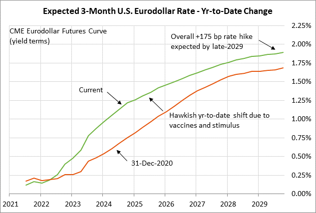 Clarida supports the market consensus for the timing of QE tapering and first rate hike — Fed Vice Chair Clarida yesterday, at a webinar held by the Peterson Institute for International Economics, made predictions about the timing of QE tapering and the Fed’s first rate hike that were generally in line with the market consensus.