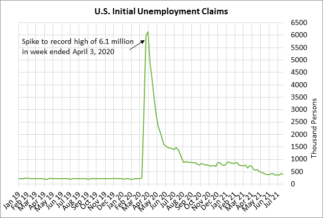 The markets are looking ahead to Friday’s unemployment report where July payrolls are expected to increase by +875,000, which would be slightly stronger than June’s increase of +850,000 and the 3-month average of +717,000. Payrolls have risen by +15.6 million from last year’s pandemic trough but still need to rise by another +6.8 million to match the pre-pandemic record high posted in February 2020.
