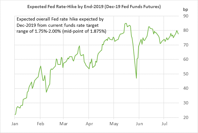 If the Fed in fact conducts its third rate hike of the year in September and its fourth rate hike in December, then the Fed will have the funds rate target at 2.25-2.50%.  At that level, the Fed will have at least pushed the funds rate into positive inflation-adjusted territory above the current expected inflation rate of about +2.1%.  The Fed at that point would then have more flexibility to slow its rate hikes to adjust to the economy and possibly the political climate.