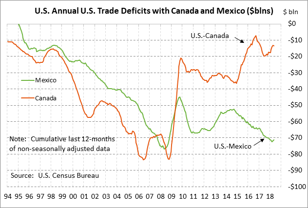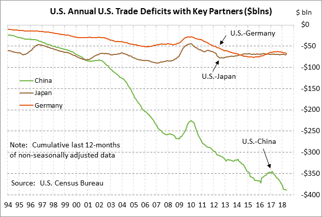 The U.S. imported about 60 billion euros worth of cars and car parts in 2017, which indicates that the impact of a U.S. tariff on European autos would be significant.  U.S. tariffs on all auto imports would have a major impact on U.S. consumers and businesses since the U.S. in 2017 imported about $360 billion worth of autos, trucks, and parts.