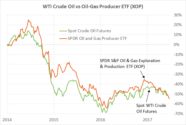 Meanwhile, Wednesday’s continued sell-off in crude oil prices caused the SPDR S&P Oil and Gas Exploration and Production ETF (XOP) to fall to a new 1-1/4 year low. XOP has now plunged by -33% from the peak seen in December when optimism was at its highest about the Nov 30 OPEC production cut agreement.