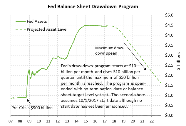 We continue to believe that the Fed is likely to start its balance sheet reduction plan at the beginning of the fourth quarter so that the plan is concurrent with calendar quarters. The Fed has said that it will begin the plan with a capped roll-off of $10 billion per month, rising by $10 billion every three months until the maximum cap of $50 billion per month is reached.