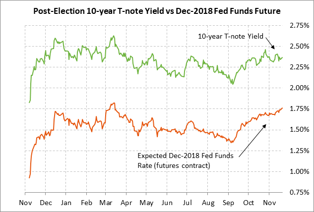 Ms. Yellen’s resignation announcement on Monday, however, did confirm that President Trump has another Fed Governor position to fill.  The Fed’s Board of Governors has seven positions, including the Fed Chair, Vice Chair, and five Governors.  Once Jerome Powell switches from a Fed Governor to the Fed Chair position, open seats will include the Vice Chair and three Governor positions.  There will be only two Governors carrying over into early 2018, i.e., Lael Brainard and Randy Quarles.