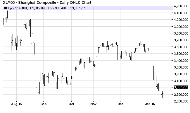 Chinese stock market on Tuesday closes higher despite slightly weaker-than-expected Q4 GDP report — The Shanghai Composite index on Tuesday closed +3.22% higher despite the fact that the Chinese Q4 GDP report of +6.8% y/y was slightly below expectations of +6.9% and posted a new 6-3/4 year low.  The markets were relieved that Q4 GDP was not any weaker than +6.8%.  An economy growing at a +6.8% rate would be cause for celebration in almost any other country other than China.  As long as the official Chinese GDP growth rate does not fall any lower than +6.5% in coming quarters, the markets will not panic.  Yet there continues to be a risk of a hard landing in China, which would be defined as an official GDP growth rate of less than about +3%.