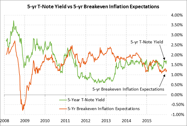 5-year T-note auction to yield near 1.72% — The Treasury today will sell $35 billion of 5-year T-notes. The Treasury will then conclude this week’s $90 billion T-note package by selling $29 billion of 7-year T-notes on Wednesday. The benchmark 5-year T-note late yesterday closed at 1.72%, which translates to an inflation-adjusted yield of 0.49% against the 5-year inflation breakeven inflation expectations rate of 1.23%.