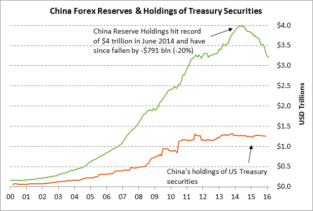 China’s FX reserves have so far fallen by a total of $791 billion (-19.8%) to $3.20 trillion from the record high of $3.99 trillion posted in June 2014. Despite that decline, China still has a massive amount of FX reserves to protect itself against a run on its currency and to provide dollars to Chinese corporations that need them to service overseas dollar-denominated debt, assuming the official reserve figures are correct.