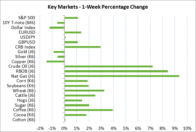 Weekly market focus — The markets this week will focus on (1) the Tue/Wed FOMC meeting where the Fed is expected to leave interest rates unchanged but where Fed Chair Yellen in her post-meeting press conference may provide some useful insights into the Fed’s policy bias looking forward, (2) central bank meetings this week in Japan and the UK, which are not expected to produce any policy changes, (3) oil prices, which posted a 2-1/2 month high last Friday but where oil producers are having trouble organizing a meeting about even freezing production, (4) U.S. politics as five states on Tuesday head to the polls to vote in the presidential primaries, and (5) this week’s heavy U.S. economic schedule.