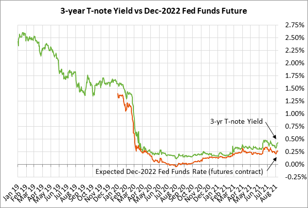 The benchmark 3-year T-note yield on Monday closed at 0.42%. The 3-year yield has moved sharply higher from last week’s 2-month low of 0.29% because of last Friday’s stronger-than-expected July payroll report of +943,000