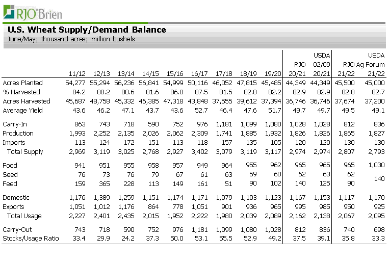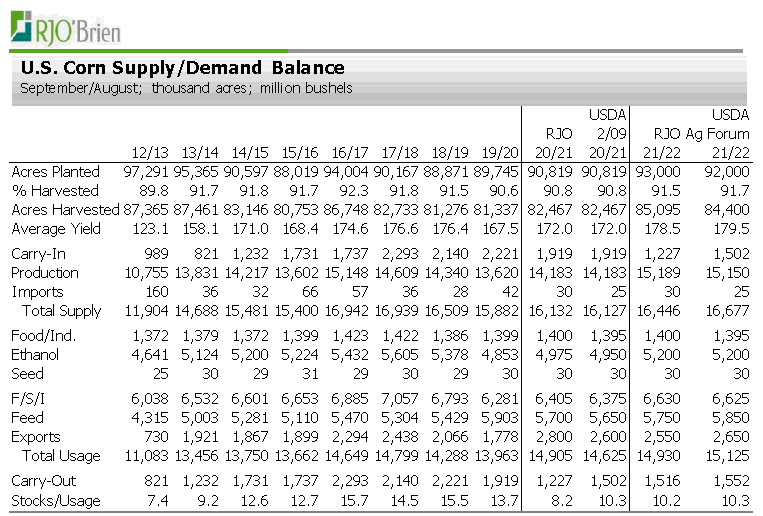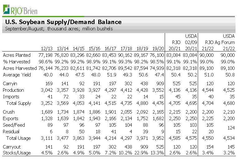 This post contains the USDA’s 2021/22 U.S. grain and oilseed balance sheets released this morning at the Ag Outlook Forum. Their full report discussing the 2021/22 situation is attached, as well.