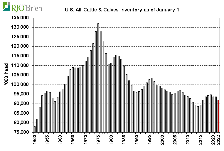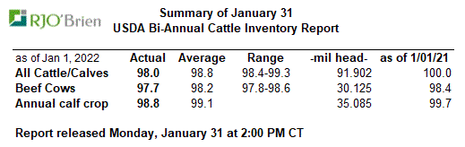 USDA BI-ANNUAL #CATTLE INVENTORY REPORT by Admin | Feb 1, 2022 -Jan 1 All Cattle/Calves lower than expected – lowest in 7 years-Jan 1 Beef Cows lower than expected – lowest in 7 years-Calf crop slightly lower than expected