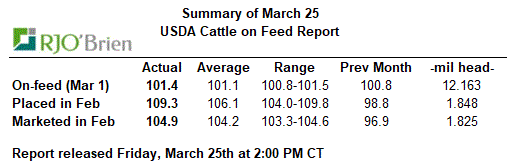 -Mar 1 Cattle on Feed slightly higher than expectations