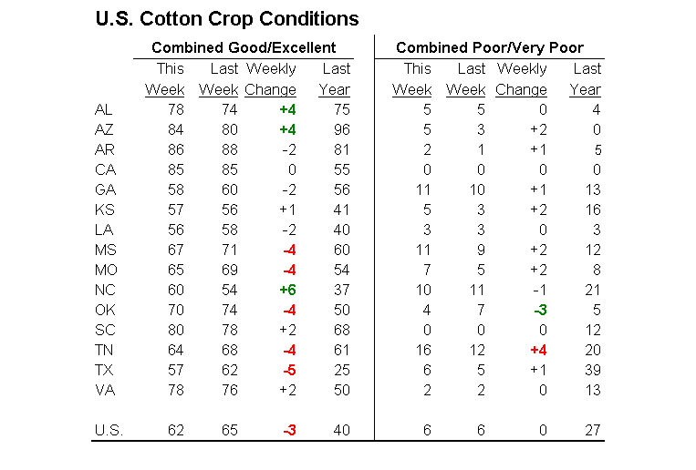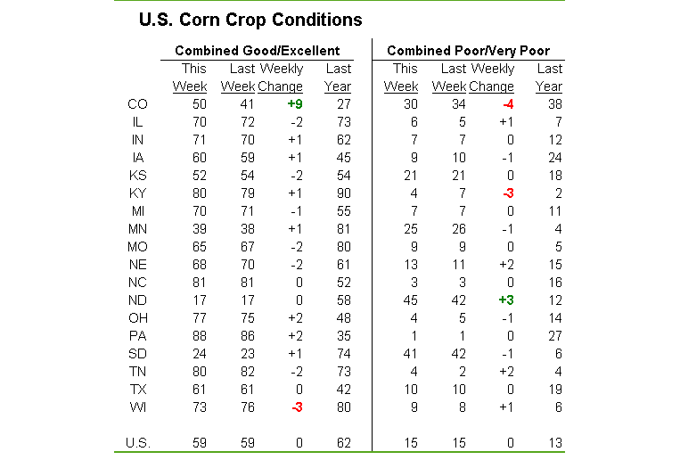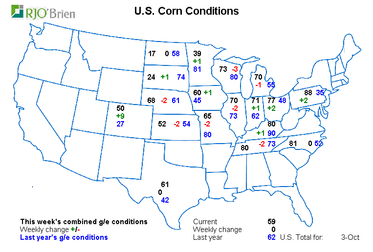 -Corn conditions 59% good/excellent vs 59% expected (58-60% range of ideas), 59% last week, 62% last year