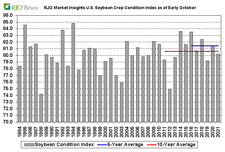 -Soybean conditions 58% good/excellent vs 58% expected (57-59% range of ideas), 58% last week, 64% last year