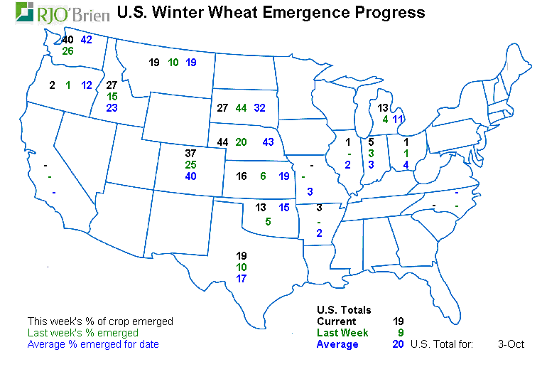 -Winter wheat planted 47% complete vs 49% expected (48-54% range of ideas), 34% last week, 46% average