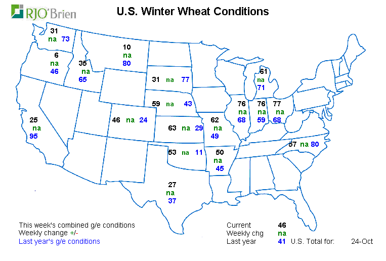 -Winter wheat conditions 46% good/excellent vs 54% expected (49-62% range of ideas), 41% last year