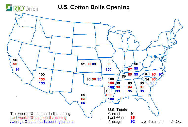 -Soybean harvested 73% complete vs 74% expected (71-77% range of ideas), 60% last week, 70% average