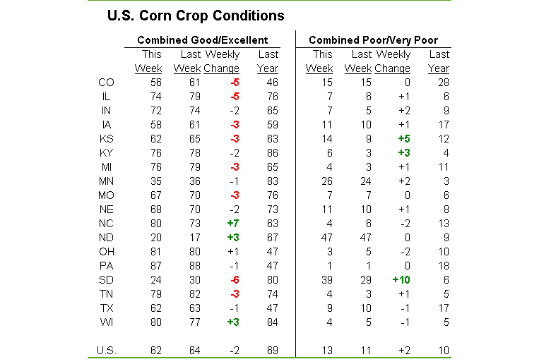 -Corn conditions 64% good/excellent vs 64% expected (62-66% range of ideas), 64% last week, 71% last year