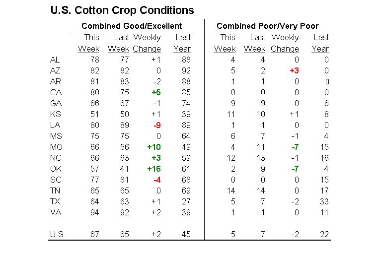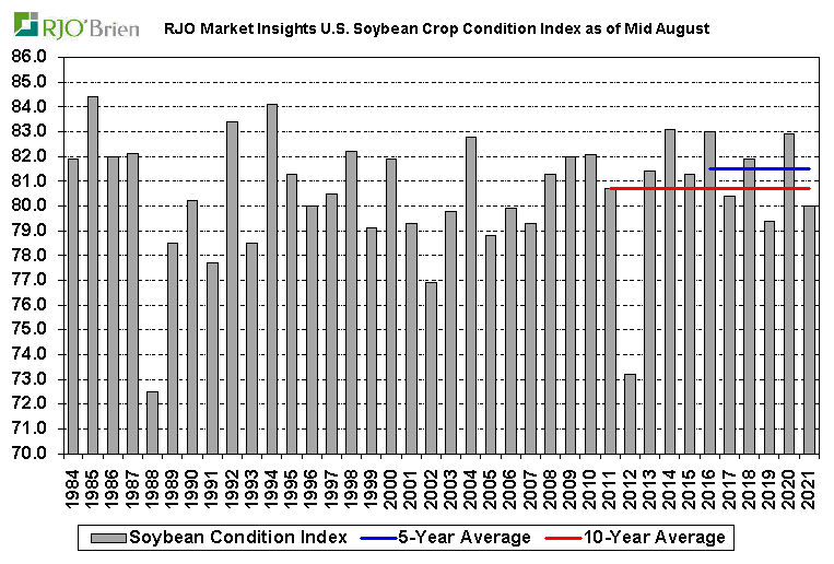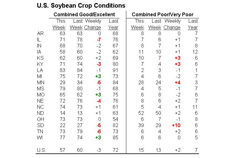 -Soybean conditions 57% good/excellent vs 60% expected (58-62% range of ideas), 60% last week, 72% last year