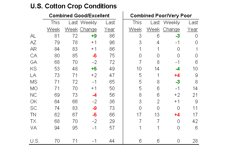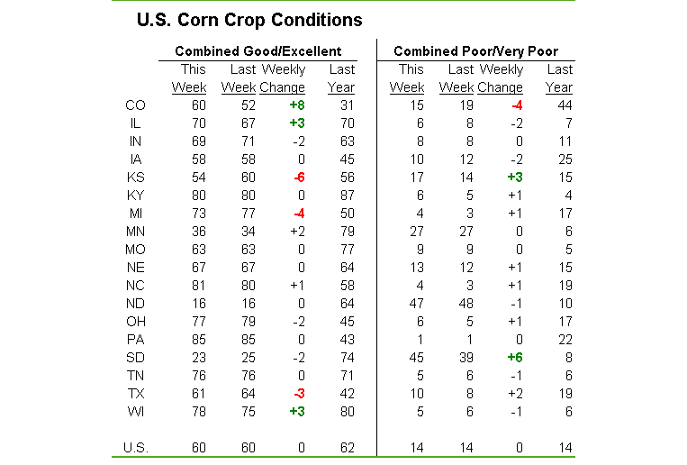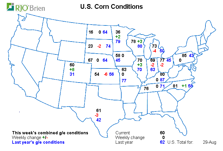 -Corn conditions 60% good/excellent vs 59% expected (58-60% range of ideas), 60% last week, 62% last year