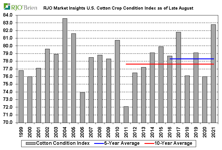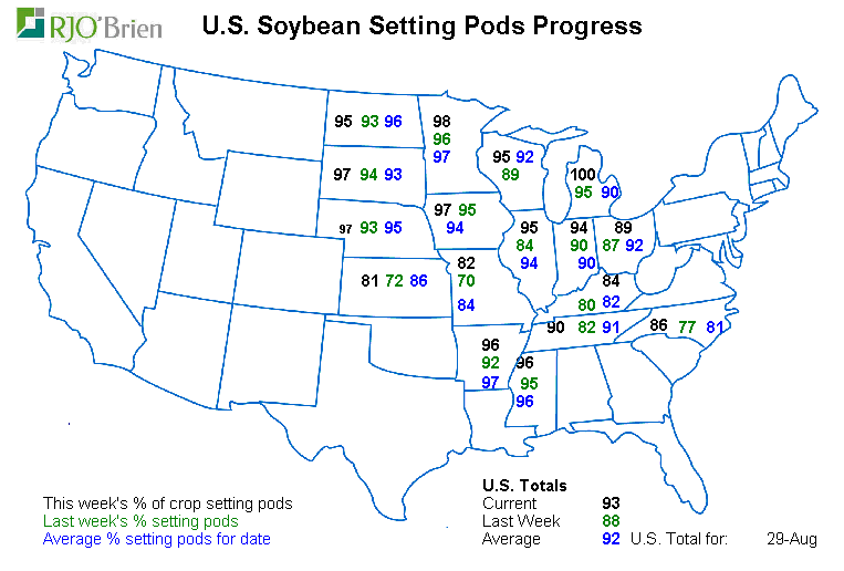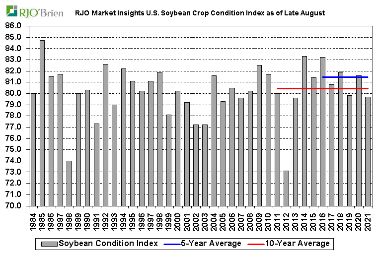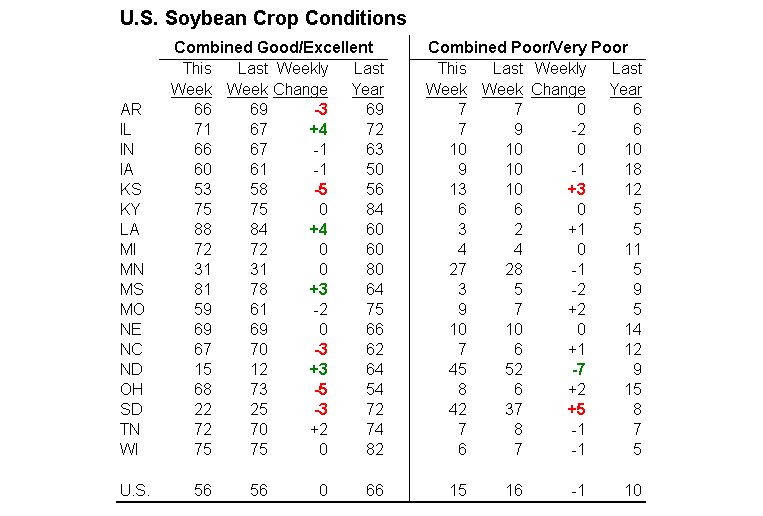 -Soybean conditions 56% good/excellent vs 56% expected (54-57% range of ideas), 56% last week, 66% last year