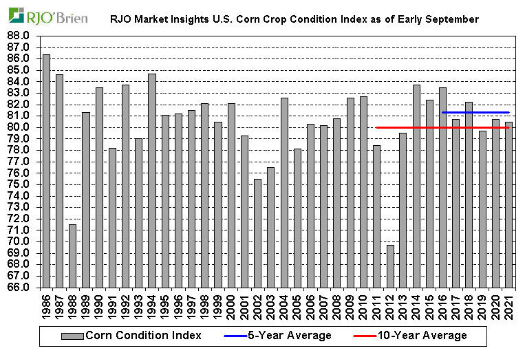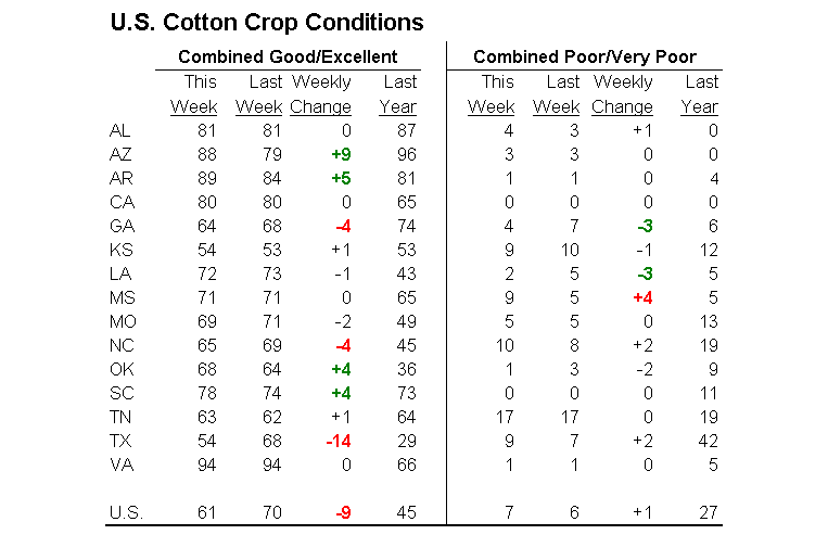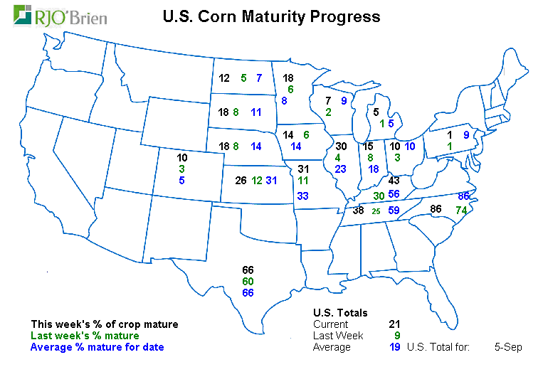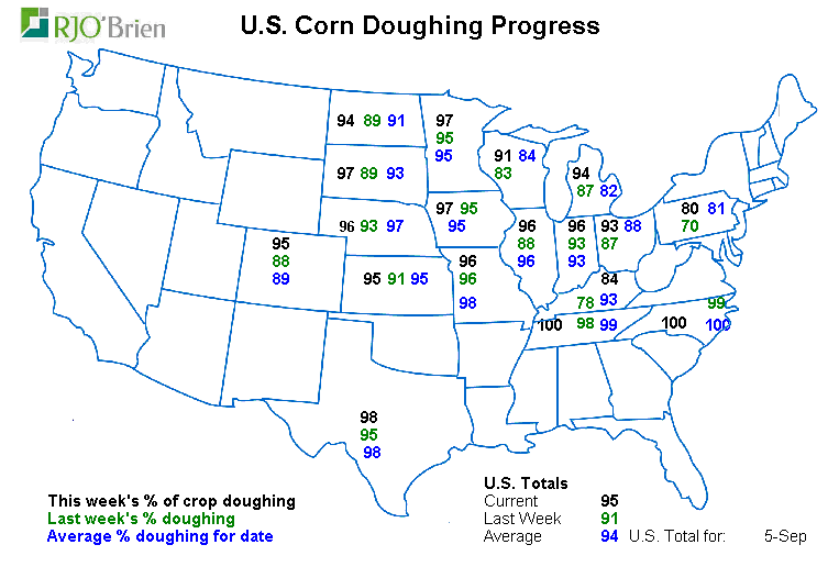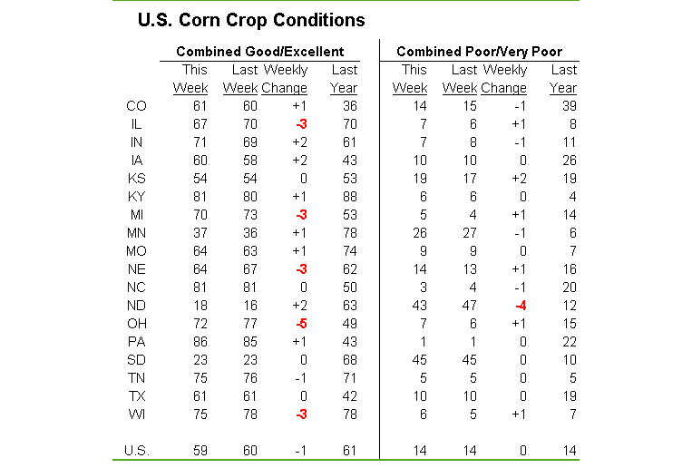 -Corn conditions 59% good/excellent vs 60% expected (59-61% range of ideas), 60% last week, 61% last year