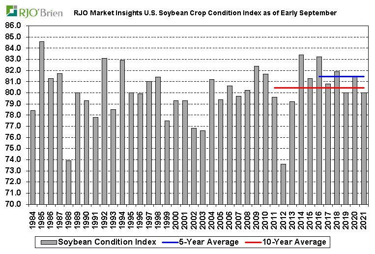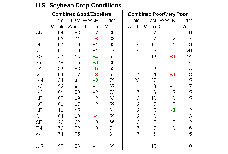 -Soybean conditions 57% good/excellent vs 57% expected (55-58% range of ideas), 56% last week, 65% last year