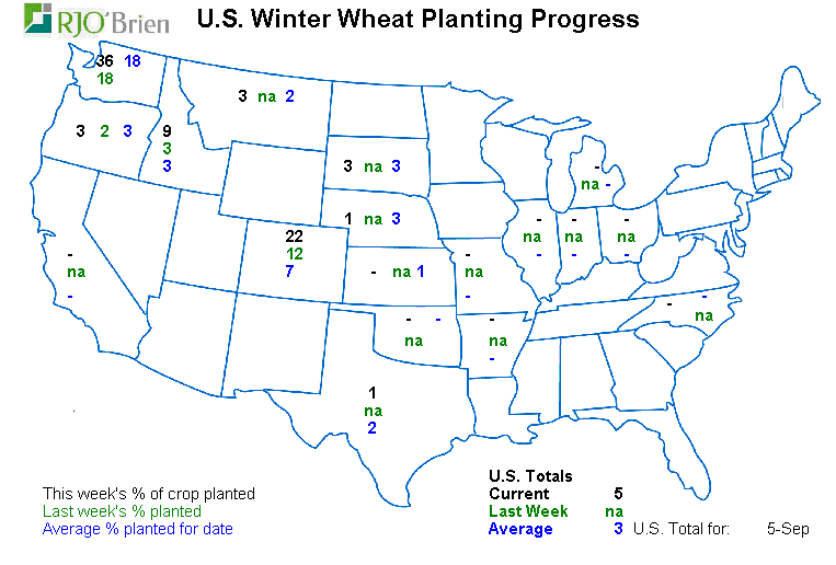 -Winter wheat planted 5% complete vs 4% expected (3-5% range of ideas), 3% average