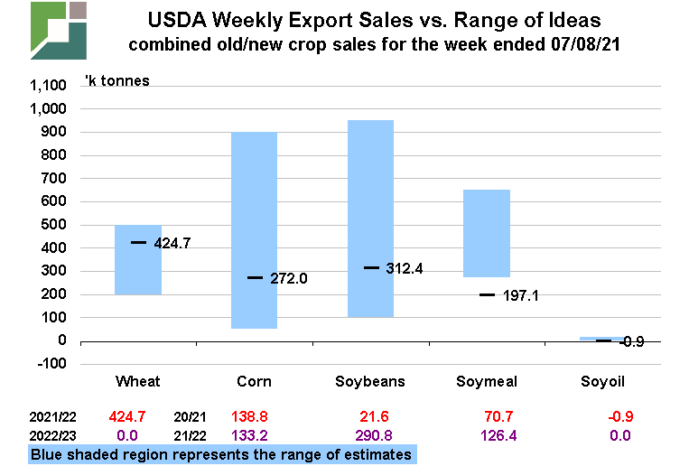 Due to travel schedules, this week’s Export Sales post only includes our usual charts summarizing sales data relative to market expectations.