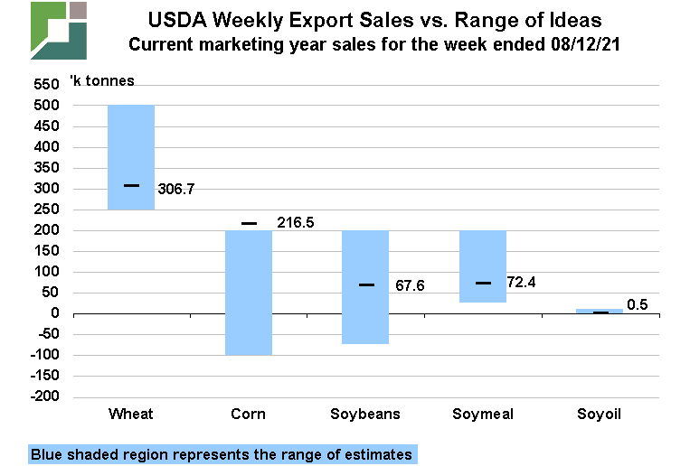 Due to travel schedules, this week’s Export Sales post only includes our usual charts summarizing sales data relative to market expectations.